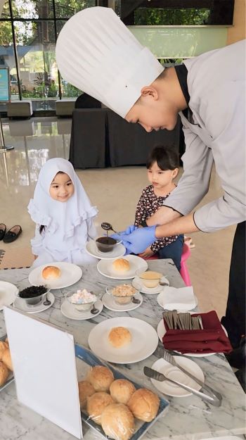 Menikmati Gulali & Ice Cream saat breakfast; dan berenang dikolam renang anak diarea terbuka.