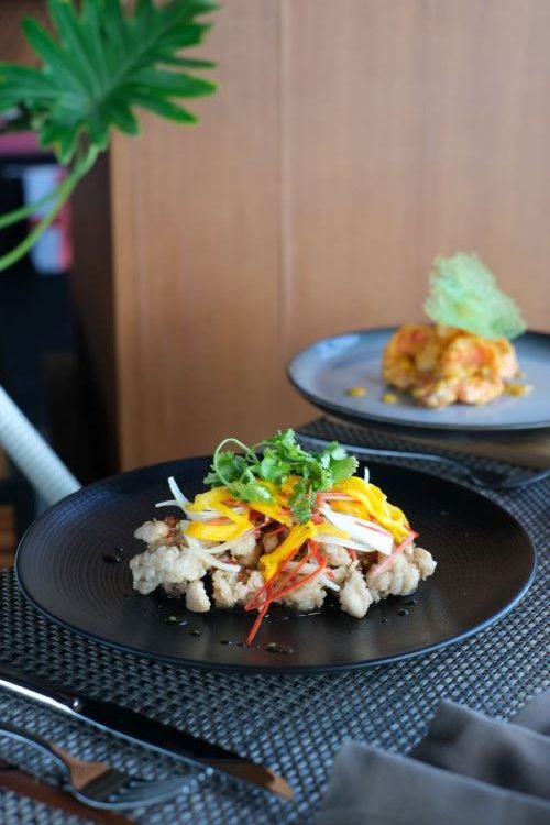 Hidangan utama kedua, Crispy Chicken Mango, menghadirkan daging paha ayam tanpa tulang yang lembut dipadukan dengan rasa manis dan asam dari mangga, menjadikannya hidangan pilihan tamu.